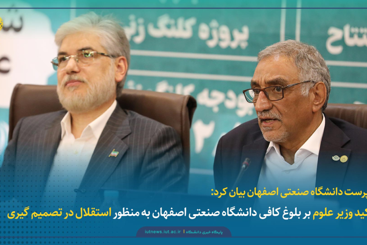 سرپرست دانشگاه صنعتی اصفهان بیان کرد: تأکید وزیر علوم بر بلوغ کافی دانشگاه صنعتی اصفهان به منظور استقلال در تصمیم گیری