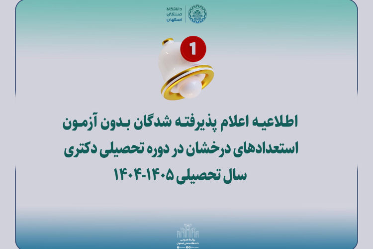 اسامي پذیرفته شدگان بدون آزمون مقطع دكتري سال تحصیلی۱۴۰۵-۱۴۰۴ دانشگاه صنعتی اصفهان