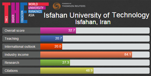 دانشگاه صنعتی اصفهان که در رتبه بندی سال 2013-2012 این مؤسسه برای نخستین بار رتبه 95 آسیا را کسب کرده بود، در رتبه بندی 2014-2013 مؤسسه رتبه بندی تایمز با ارتقاء 10 رتبه ای و کسب رتبه 85 به همراه دانشگاه های صنعتی شریف و علوم پزشکی تهران تنها دانشگاه های ایرانی حاضر در فهرست یکصد دانشگاه ممتاز قاره آسیا بودند.