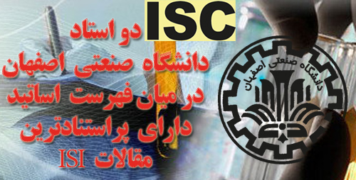 دو استاد دانشگاه صنعتی اصفهان در میان فهرست اساتید دارای پراستناد ترین مقالات ISI