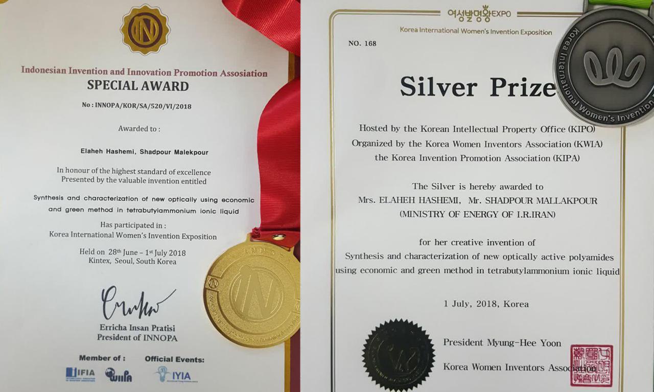 این اختراع با عنوان ' تهیه و شناسایی پلی آمیدهای جدید فعال نوری با استفاده از روش اقتصادی و سبز در حلال مایع یونی'، براساس تحقیقات دکتر شادپور ملک پور استاد دانشکده شیمی دانشگاه صنعتی اصفهان و دکتر الهه هاشمی، دانش آموخته دکتری شیمی این دانشکده به دست آمده است.