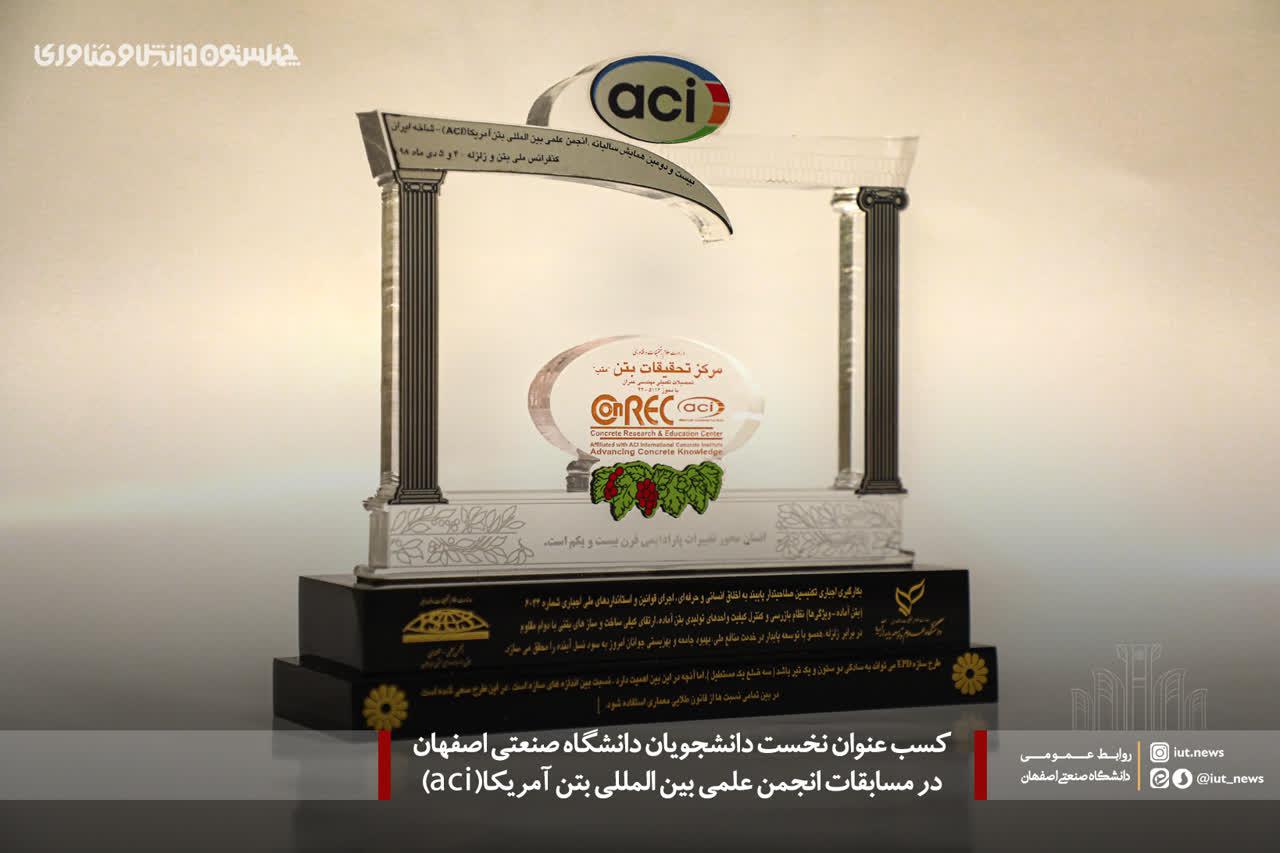 كسب عنوان نخست دانشجویان دانشگاه صنعتی اصفهان در مسابقات انجمن علمی بین المللی بتن آمریکا(aci)