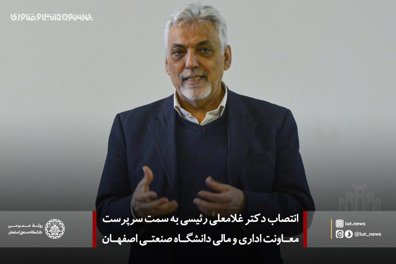 انتصاب دكتر غلامعلي رئيسي به سمت سرپرست معاونت اداري و مالي دانشگاه صنعتی اصفهان