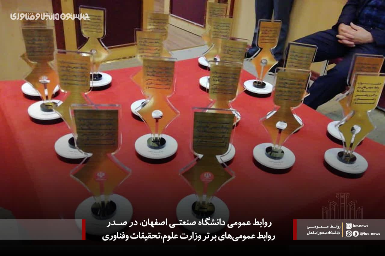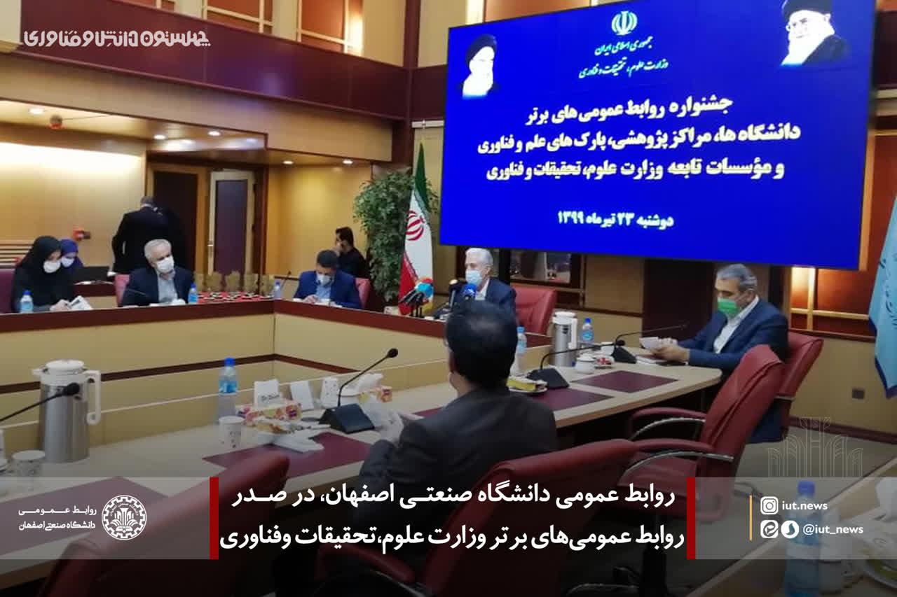 در جشنواره روابط عمومی های برتر دانشگاه‌ها، مراکز پژوهشی و پارک‌های علم و فناوری کشور، روابط عمومی دانشگاه صنعتی اصفهان با کسب عنوان نخست کشور در 2 شاخص از 3 شاخص عمومی دانشگاه های الف، در صدر روابط عمومی های برتر وزارت علوم، تحقیقات وفناوری قرار گرفت.