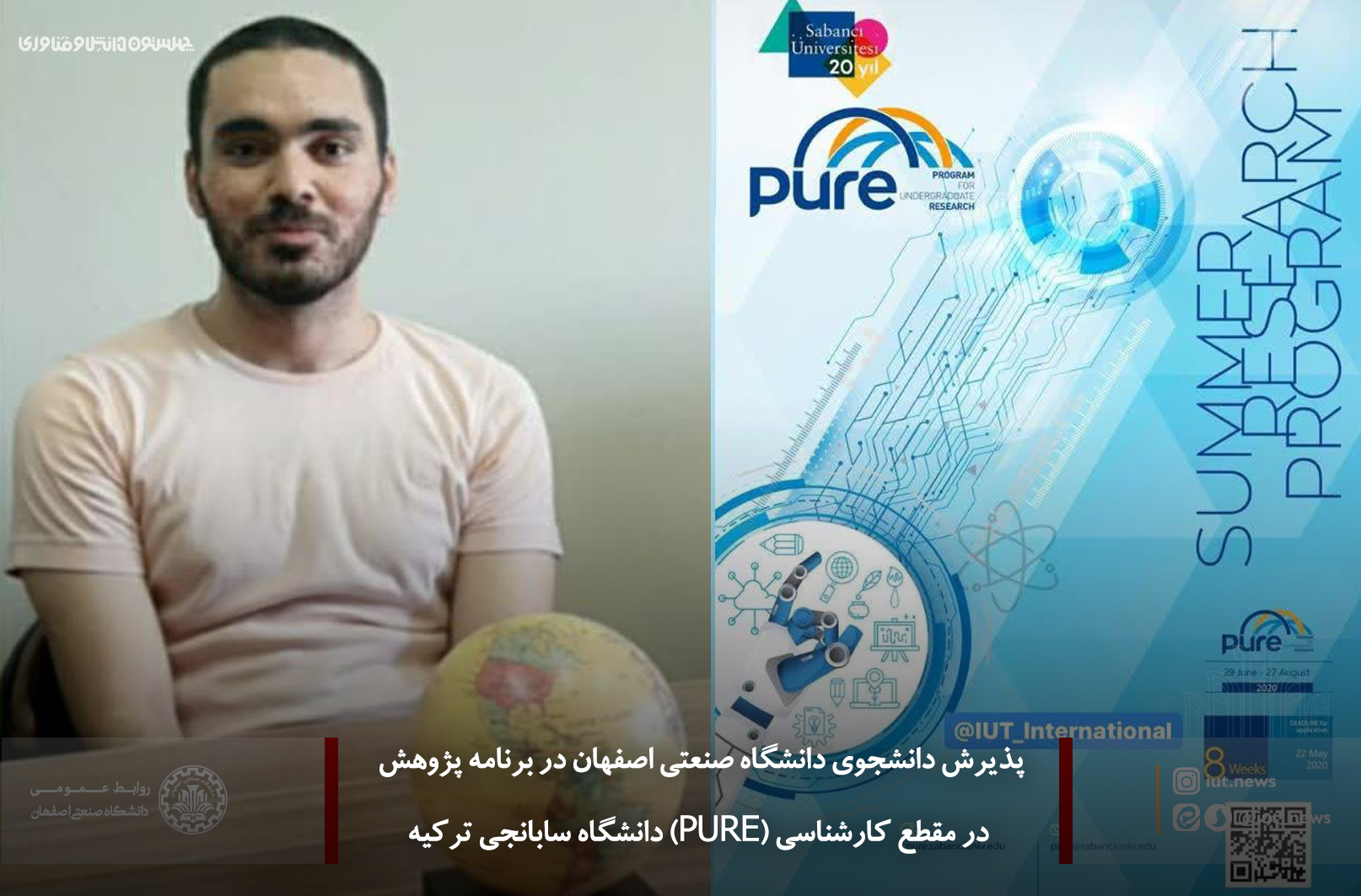 محمد مهدی رستم آبادی دانشجوی مقطع کارشناسی علوم و مهندسی صنایع غذایی دانشگاه صنعتی اصفهان، برای برنامه پژوهش در مقطع کارشناسی(PURE) ، تابستان سال 2020 در دانشگاه سابانجی ترکیه پذیرفته شده و اين دوره را با موفقيت به اتمام رساند.