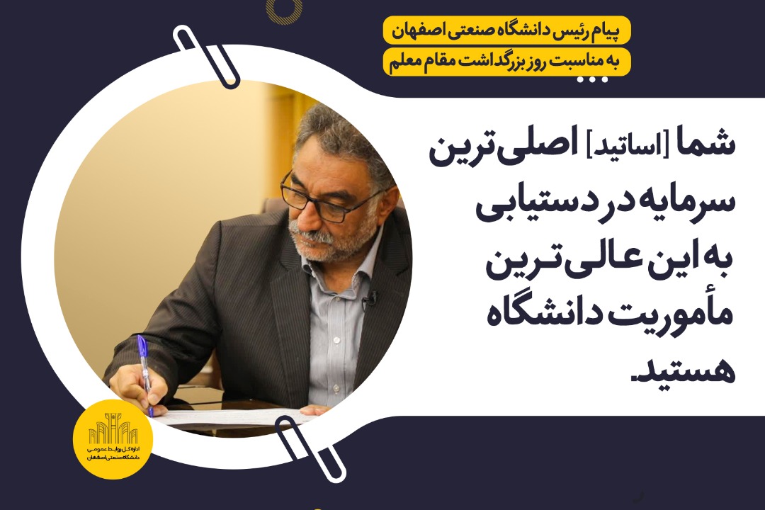 پیام دکتر سید مهدی ابطحی رئیس دانشگاه صنعتی اصفهان به مناسبت روز بزرگداشت مقام شامخ معلم