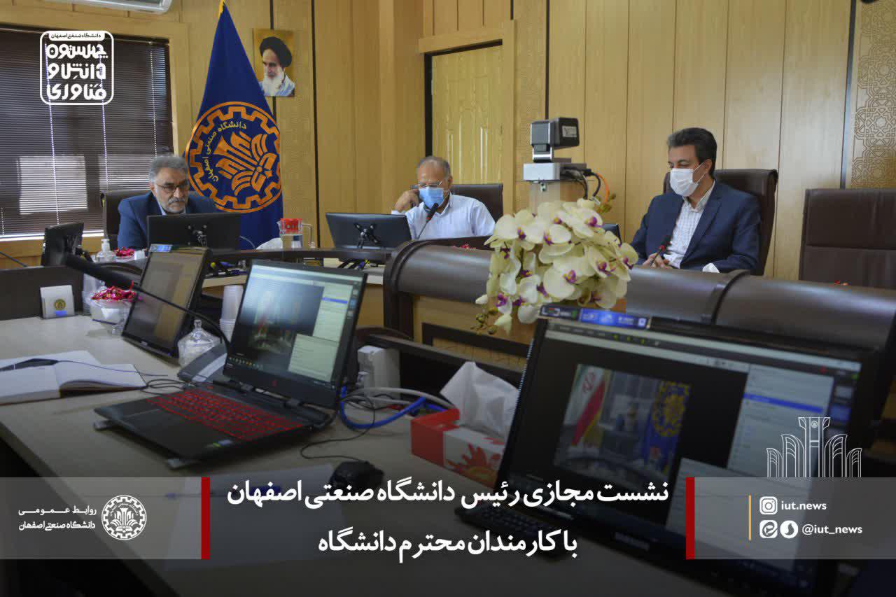 رئیس دانشگاه صنعتی اصفهان در ادامه دیدار با اقشار مختلف دانشگاهیان، امروز شنبه در گفتگوی مجازی با كارمندان دانشگاه، ضمن تقدیر از تلاشهای کارکنان دانشگاه در ایام کرونا، ضرورت تشکیل این جلسه را بهبود شرایط دانشگاه با بهرهمندی از نظرات کارکنان دانست.
