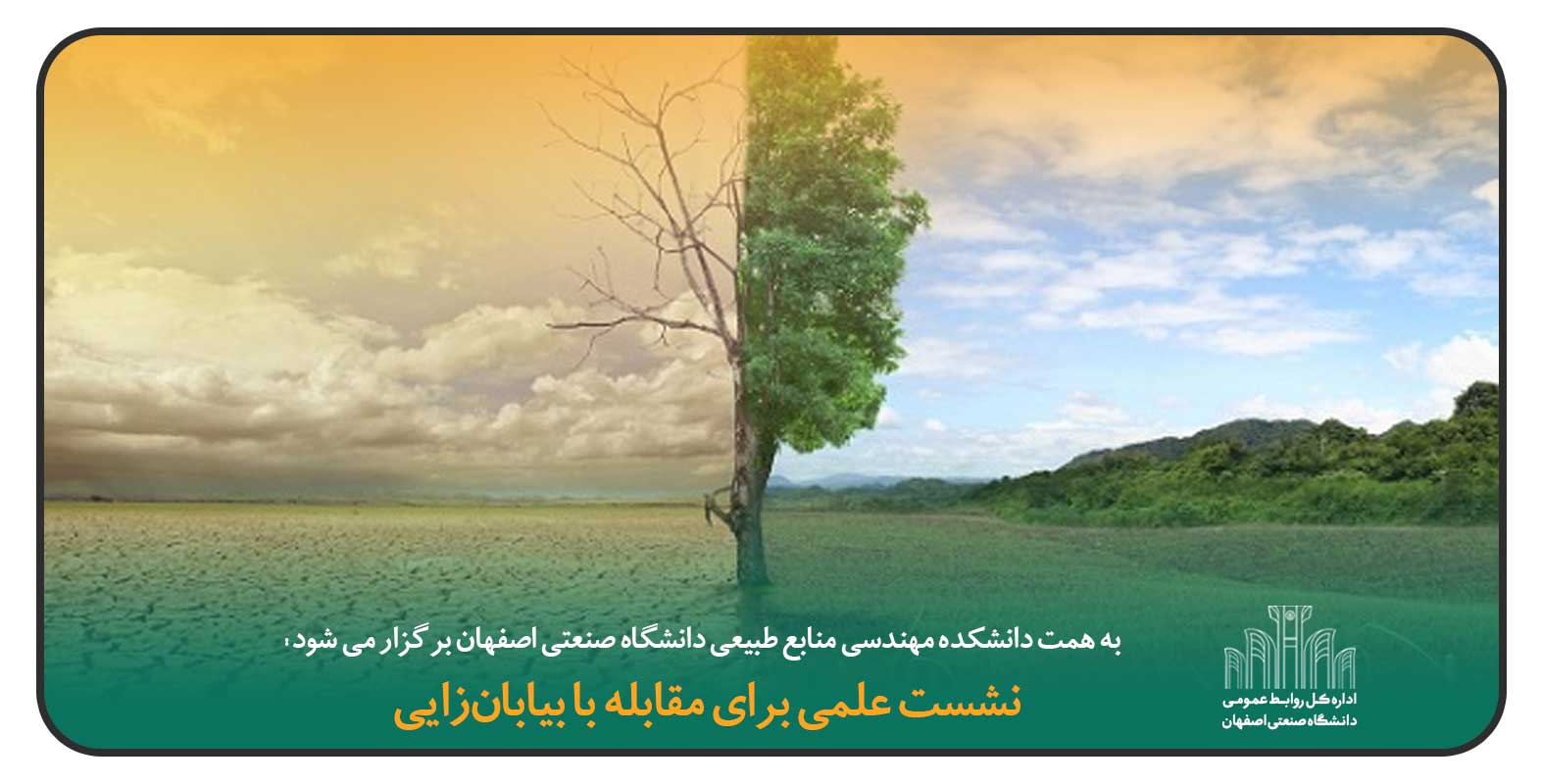 معاونت پژوهشی دانشکده مهندسی منابع طبیعی دانشگاه صنعتي اصفهان با همکاری کمیته علم و فناوری کارگروه مقابله با بیابان‌زایی نشست علمی به مناسبت روز جهانی مقابله با بیابان‌زایی را روز چهارشنبه، ۸ تیرماه  به‌صورت برخط برگزار می‌کند.