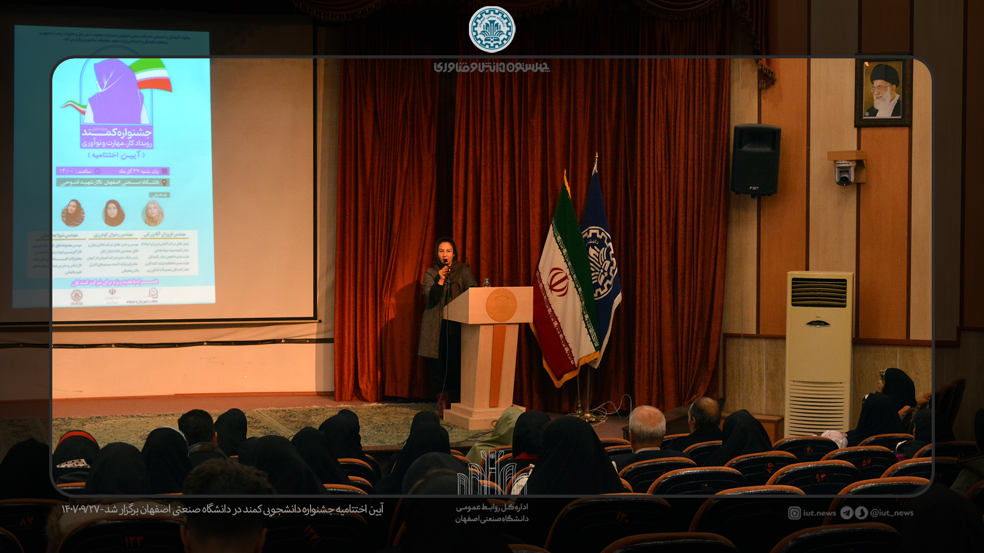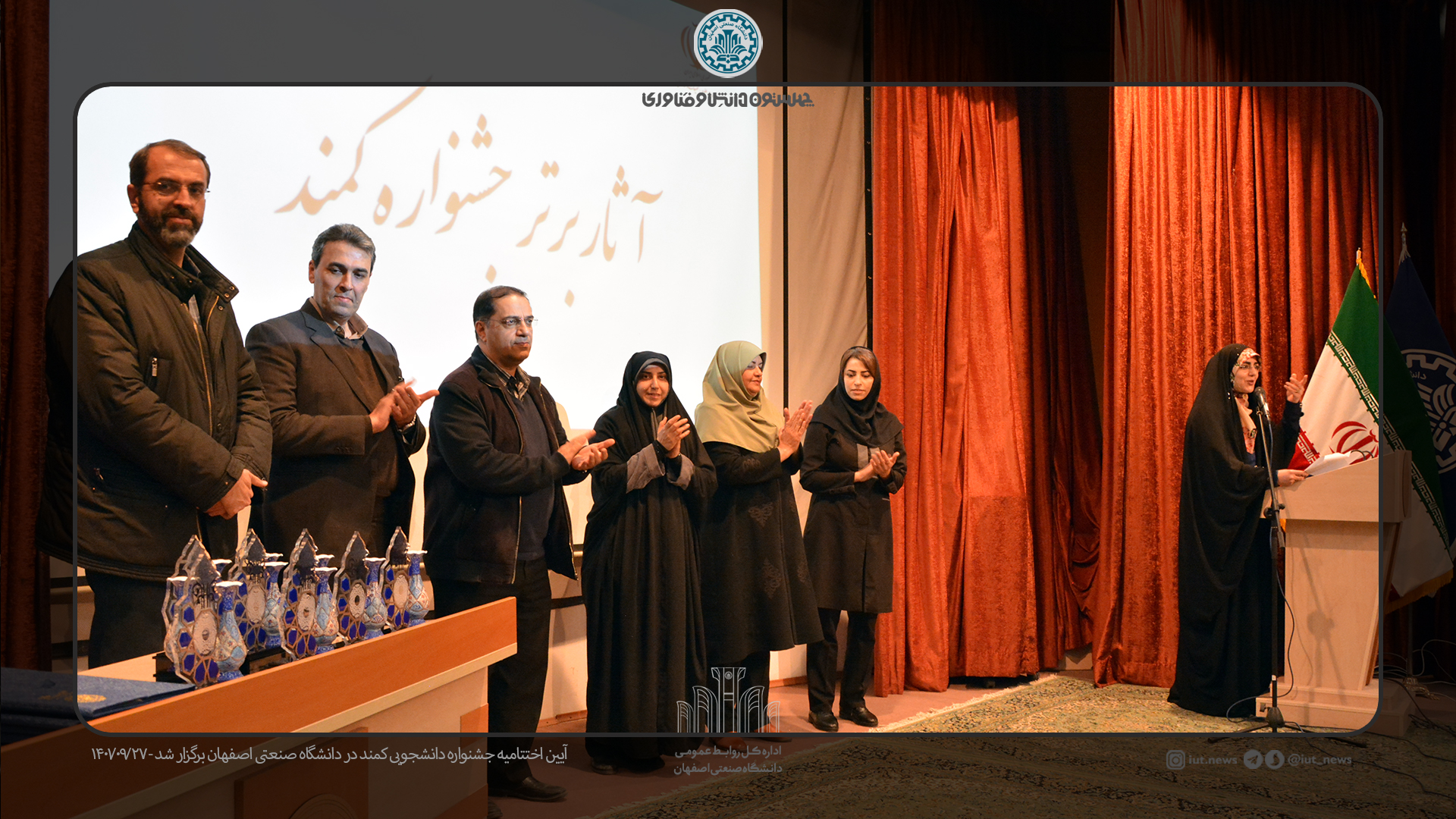 بدنبال برگزاری اختتامیه جشنواره استانی کمند از 9 بانوی دانشجو برگزیده رویداد کار، مهارت و نوآوری در سه شاخه فنی و مهندسی و علوم پایه، حوزه انسانی و فرهنگ و هنر از 10 دانشگاه استان اصفهان تقدیر شد.