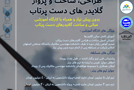 گفتنی است، کارگاه های آموزشی گلایدرهای دست پرتاب 16 اسفند ماه در دانشکده مهندسی مکانیک برگزار و رقابت بین تیم های شرکت کننده تا 19 فروردین ماه که برگزیدگان معرفی شوند، ادامه خواهد داشت.