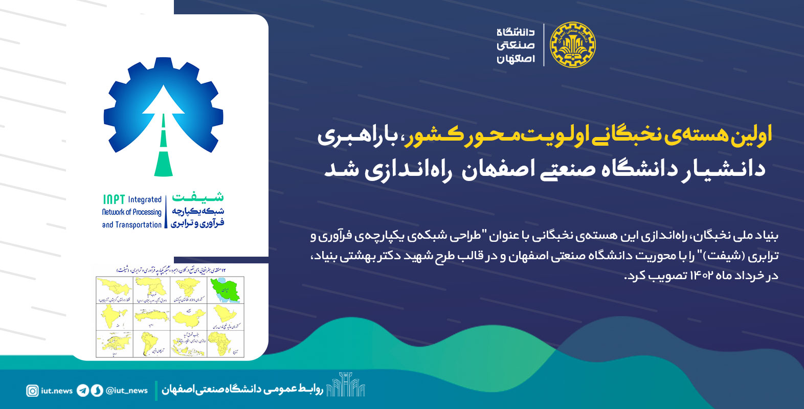 بنیاد ملی نخبگان، راهاندازی این هستهی نخبگانی با عنوان 'طراحی شبکهی یکپارچهی فرآوری و ترابری (شیفت)' را با محوریت دانشگاه صنعتی اصفهان و در قالب طرح شهید دکتر بهشتی بنیاد، در خرداد ماه ۱۴۰۲ تصویب کرد.
