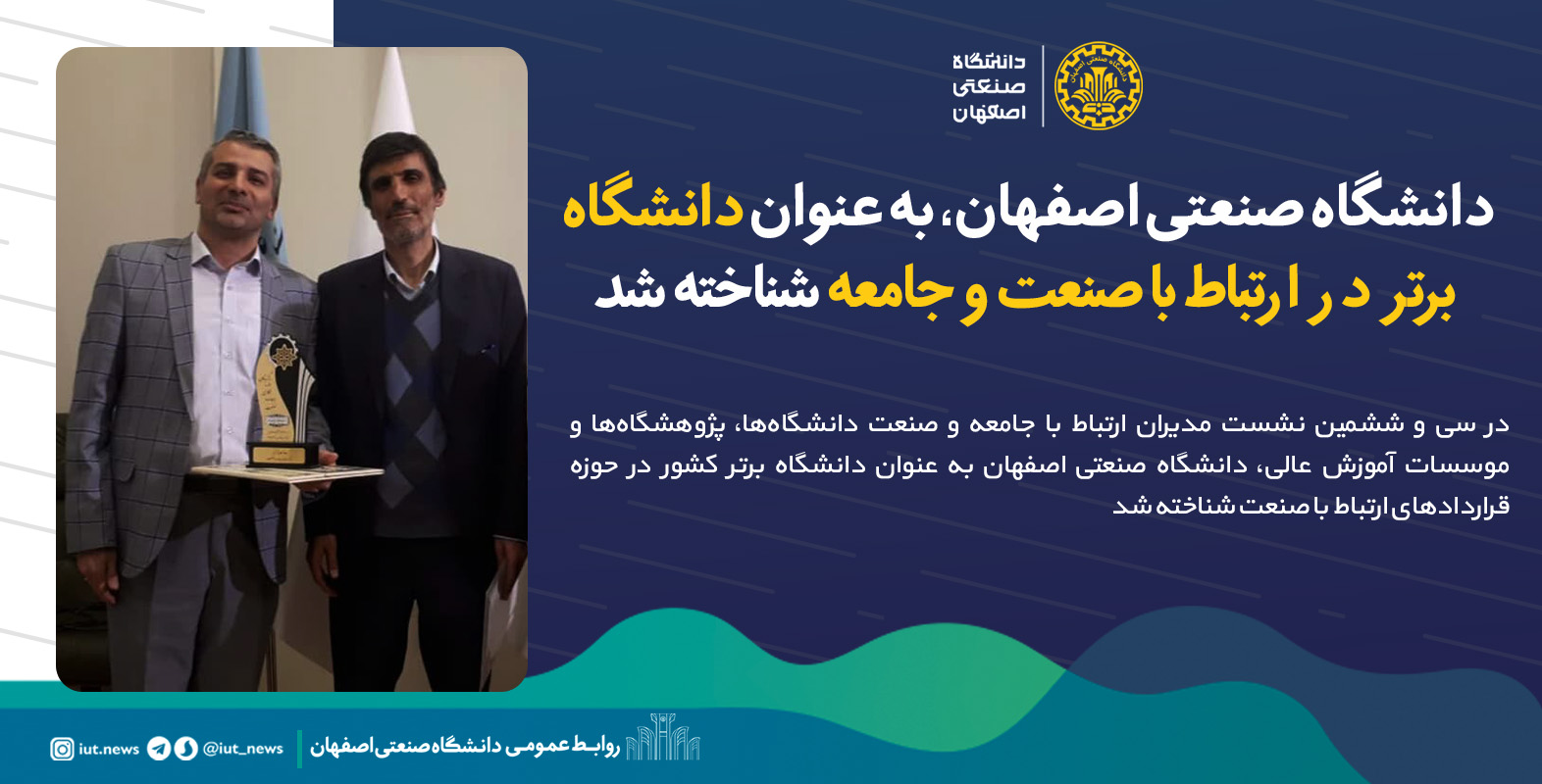 دانشگاه صنعتی اصفهان، دانشگاه برتر در ارتباط با صنعت و جامعه شناخته شد