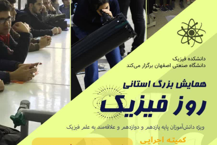 همایش بزرگ استانی روز فیزیک ویژه دانش‌آموزان علاقه‌مند به علم فیزیک به همت دانشکده فیزیک دانشگاه صنعتی اصفهان برگزار می‌شود.