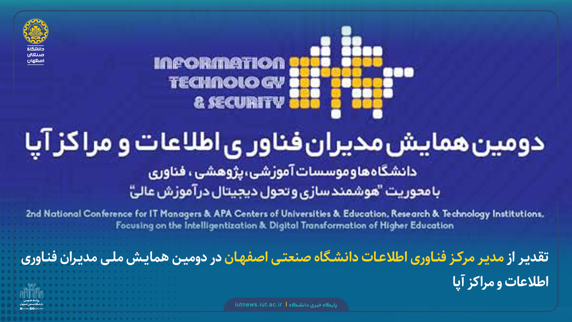 تقدیر از مدیر مرکز فناوری اطلاعات دانشگاه صنعتی اصفهان در دومین همایش ملی مدیران فناوری اطلاعات و مراکز آپا