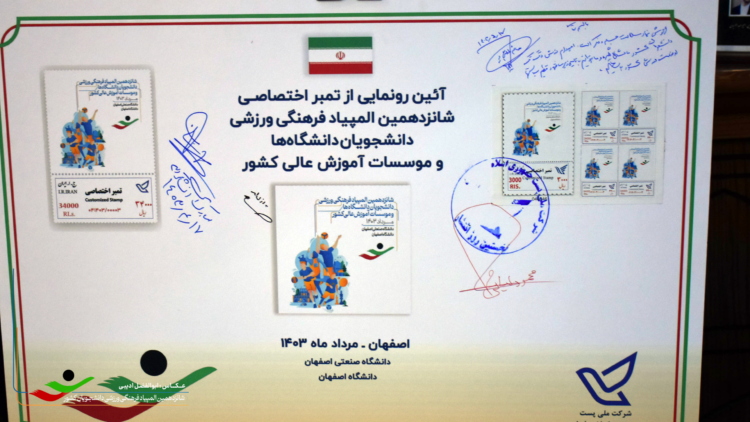 گفتنی است تمبرهای اختصاصی به مناسبتهای مختلف و وقایع مهم با تعداد و شمارگان محدود فقط برای یک بار چاپ و منتشر میشود و این بار ادارهکل پست استان اصفهان با همکاری دانشگاه صنعتی در شانزدهمین المپیاد فرهنگی – ورزشی دانشگاهها و مراکز آموزش عالی کشور تمبر اختصاصی این مناسبت را منتشر و با حضور محمود لیائی، مدیرعامل شرکت پست جمهوری اسلامی ایران و هاشم داداشیپور، رئیس سازمان امور دانشجویان کشور در این مراسم رونمایی و ممهور به مهر شرکت ملی پست ایران کرد.
