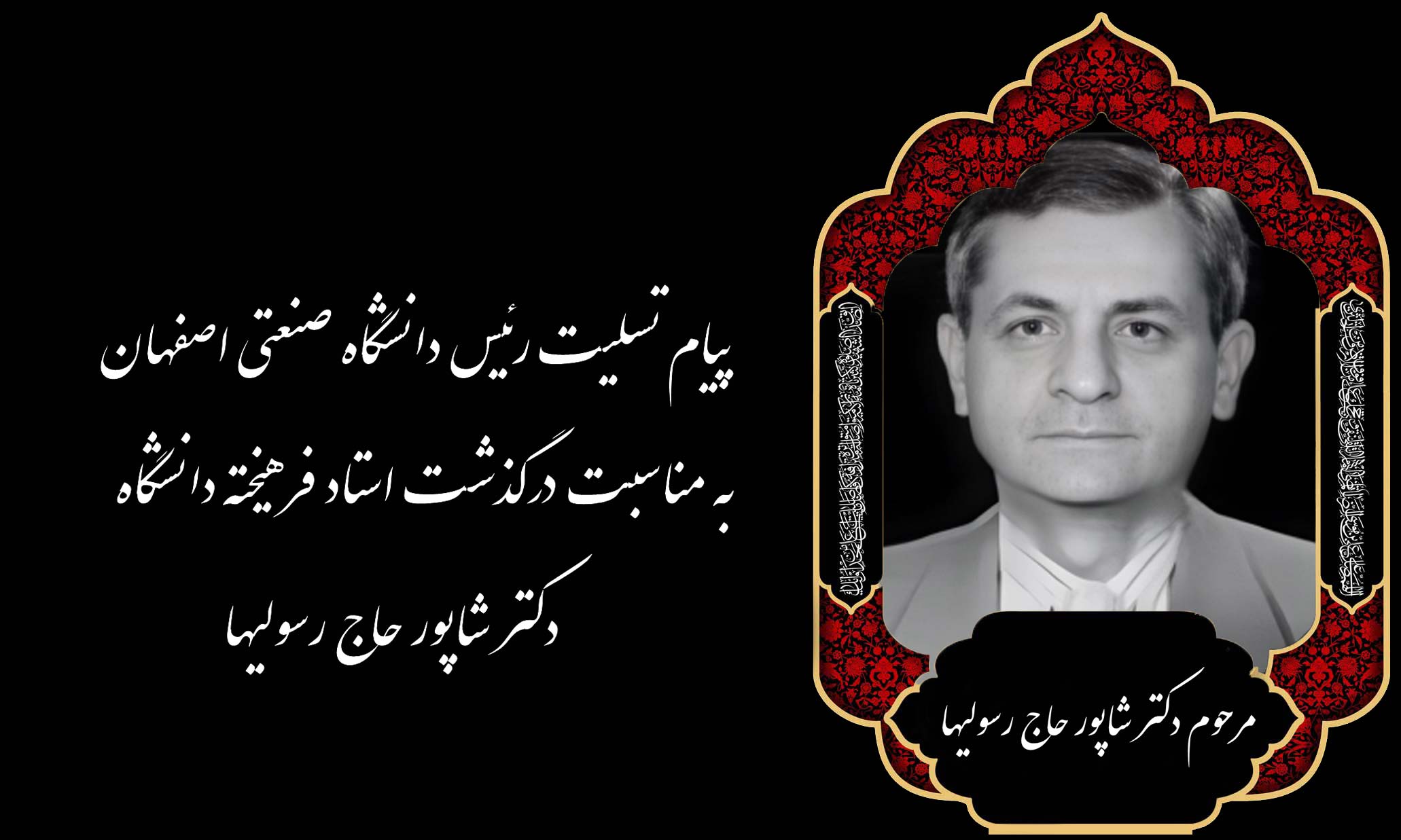پیام تسلیت رئیس دانشگاه صنعتی اصفهان به مناسبت درگذشت استاد فرهیخته و عضو هیئت‌علمی بازنشسته دانشکده مهندسی کشاورزی ، دکتر شاپور حاج رسولیها