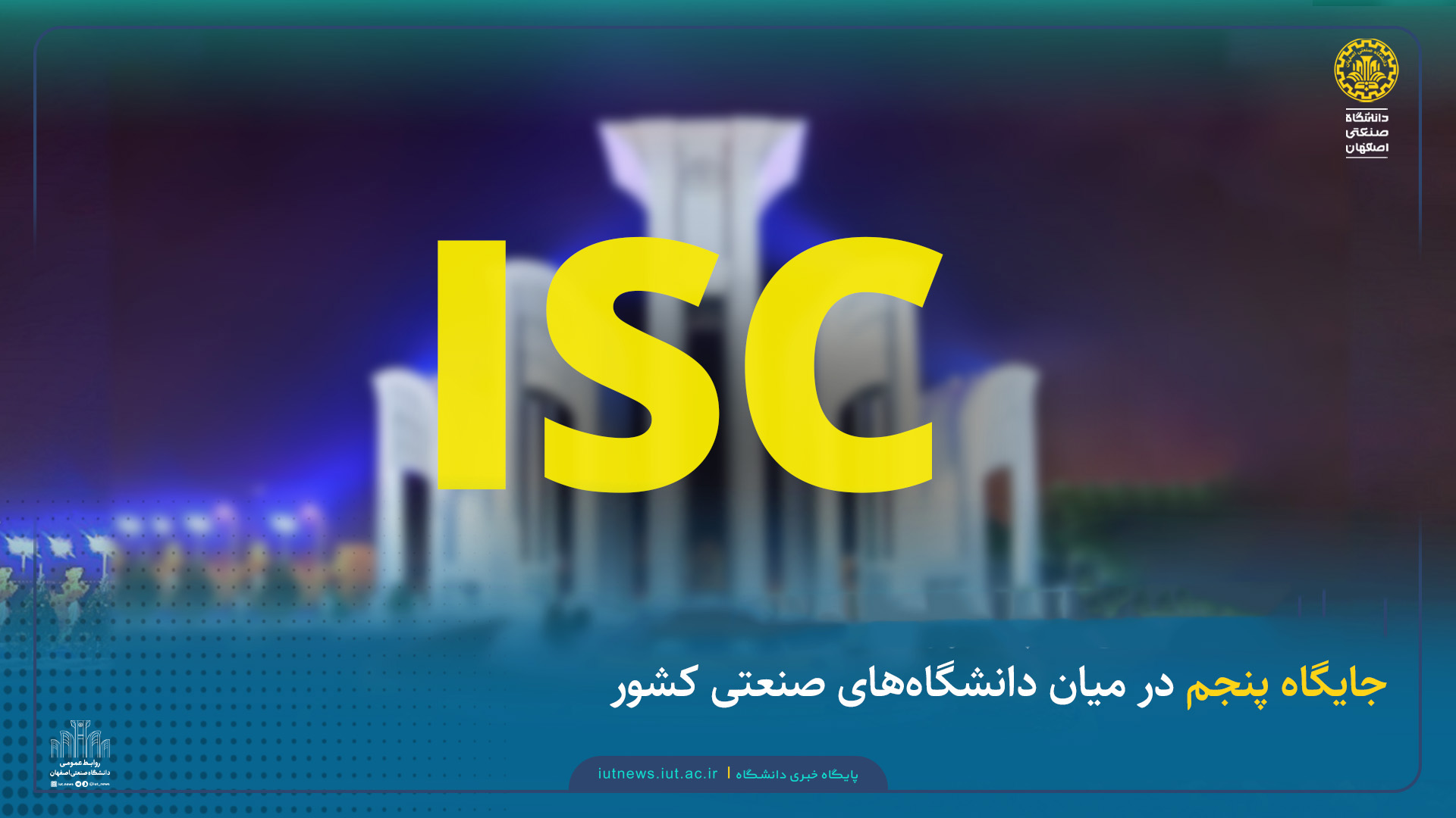 بر اساس نتایج رتبهبندی ملی ISC که به تازگی منتشر شده و در جلسه ۹۸۰ شورای گسترش آموزش عالی وزارت علوم، تحقیقات و فناوری در فروردینماه ۱۴۰۴ به تصویب رسیده است، دانشگاه صنعتی اصفهان در میان دانشگاههای صنعتی کشور در رتبه پنجم قرار گرفت.
