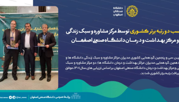 کسب دو رتبه برتر کشوری توسط مرکز مشاوره و سبک زندگی و مرکز بهداشت و درمان دانشگاه صنعتی اصفهان