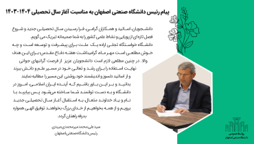 پيام رئيس دانشگاه صنعتي اصفهان به مناسبت آغاز سال تحصيلي 1404-1403