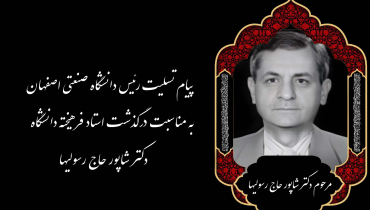 پیام تسلیت رئیس دانشگاه صنعتی اصفهان به مناسبت درگذشت استاد فرهیخته و عضو هیئتعلمی بازنشسته دانشکده مهندسی کشاورزی ، دکتر شاپور حاج رسولیها