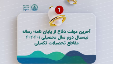 اطلاعيه آخرين مهلت دفاع از پايان نامه / رساله نيمسال دوم سال تحصيلي ۴۰۲-۴۰۱ مقاطع تحصيلات تكميلي